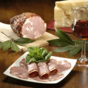 Un prosciutto di alta gamma, di grande morbidezza e rotondità di gusto, prodotto esclusivamente da cosce nazionali. Senza glutine, senza derivati del latte e senza polifosfati aggiunti.