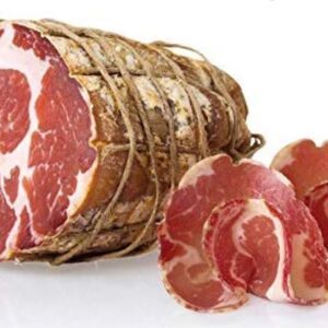 Il Prosciutto di Parma DOP nasce in una limitata area geografica e viene prodotto nel rispetto del Disciplinare del Consorzio del Prosciutto di Parma. La coscia è di un maiale pesante di circa 150/160 kg nato e allevato in Italia alimentato con cibi di qualità.